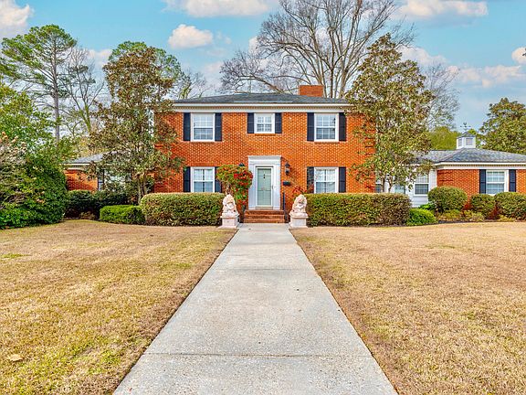 Introducing the exquisite Winesett residence, a gem crafted in 1950 by Lemuel Winesett, the distinguished former owner, publisher, and editor of the Marion Star. Nestled on a coveted street in Marion, this Georgian-style marvel exudes timeless charm. Fondly remembered for hosting elegant gatherings, Lem and Evelyn Winesett's legacy is woven into the very fabric of this distinguished abode.Situated on a picturesque half-acre corner lot, this home boasts a breathtaking landscape adorned with mature camellia bushes, limelight hydrangea shrubs, and iconic Southern azaleas that have flourished over the decades. Recently and meticulously renovated, to include a brand new HVAC/furnace, seamlessly blends modern sophistication with the home's original character and bespoke details.Step intoStep into the bright and airy chef's kitchen, featuring top-tier stainless steel Thermador appliances, a 6-burner gas cooktop, custom cabinetry, natural quartzite countertops, and a central island with seating for three. All bathrooms have been transformed into marble-clad spa-like retreats. The family room's fireplace, rebuilt with brick masonry and enhanced with gas logs, adds a touch of warmth to the space. Original solid wood shutters grace the windows facing the front yard, maintaining their timeless elegance. The first level hosts a spacious formal living and dining room, adorned with an original center medallion on the ceiling. The family room, adjacent to the kitchen, boasts hand-hewn solid ceiling beams and a mantle crafted from reclaimed mahogany. A sunlight-drenched office features original varnished brick flooring, perfect for a home library or display space. Dual ensuite master bedrooms, one on each level, showcase unique features, from Blue Bahia granite and Grecian white marble to coastal blue glass tiles. The second level houses three large bedrooms, including the master ensuite, transformed from the original fourth bedroom. Carrara marble adorns the master bathroom, creating a soothing oasis with double vanities, custom lighting, and an exquisite shower. The fenced-in backyard, framed by greenery and trees, feels like your own retreat. A covered carport and open patio are a perfect setting for relaxation. This home includes an outdoor shed and covered patio. Located less than a mile from Marion's downtown district, and within easy walking distance to parks, a playground, a track, and tennis courts, this home speaks to individuals seeking a harmonious blend of history, sophistication, and modern living.