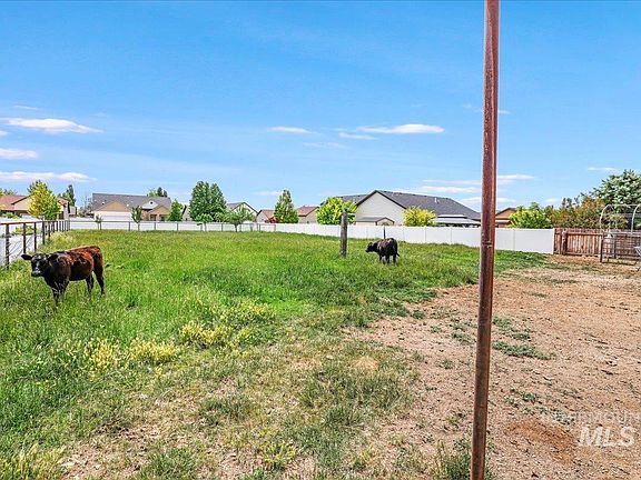 Welcome to your Twin Falls homestead dream! This 3 bed (easily add a 4th!), 3 bath home sits on just over an acre across two parcels—one county-zoned—perfect for cows, chickens, horses, sheep & more. The spacious kitchen is ideal for baking, canning, and gathering, and the brand-new wraparound patio overlooks your future hobby farm. A 30x40 shop with 10-ft door offers space for projects or equipment. The home is on city water/sewer but also includes a private well, plus a wood-burning stove—making it ready for partial off-grid living. Add a generator or solar panels and you’re set. Includes 1 Twin Falls Canal Co. pressurized water share for livestock and gardening. Bordering the pasture is a fruit producing orchard currently planted with: apples, cherries, pears, peaches and apricots. Low maintenance yard with beautiful mature grapes and trees. Self-sufficiency, space to grow, and small-town convenience—this one has it all! No HOA or CC&R's!!