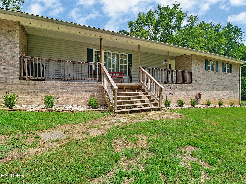 Beautiful 3 bedroom 2 bath brick home with 3+ acres and a full basement is located in Clarkrange West,large living area, spacious kitchen with lots of cabinets, large master suite, attached garage, covered back porch and fenced in area perfect for pets, this is a great home located in a beautiful neighborhood!!! Buyer to verify all information and measurements in order to make an informed offer