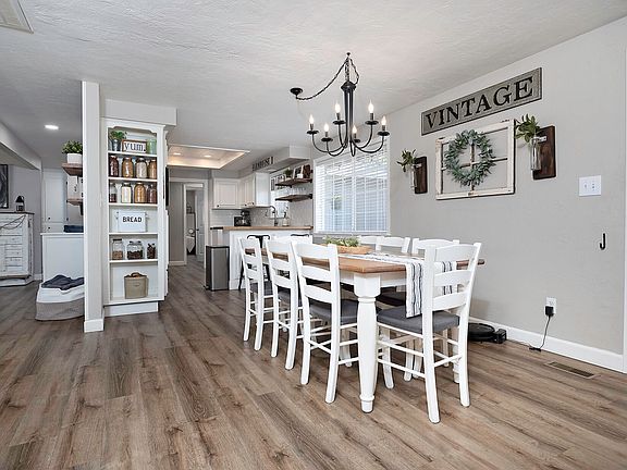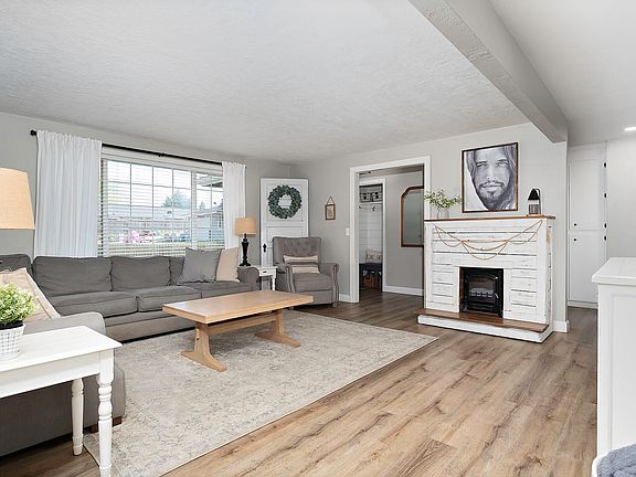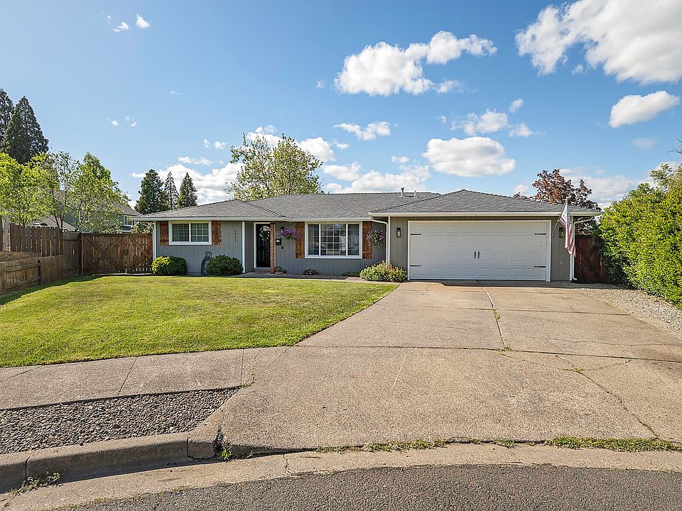 The living room features a large shiplap wall which is the perfect backdrop for a mounted TV. The kitchen has all new appliances and butcher block countertops. The dining room is the perfect size for all the family to sit enjoy a meal together. All the bedrooms are spacious, and the primary has a walk-in closet. The flooring is luxury vinyl plank through out for easy maintenance. Updated double paned vinyl windows for all the natural light to shine in. New roof installed December of 2023. The property is fully fenced with mature landscaping and timed sprinklers front and back. Cul-de-sac location and backyard views of the Table Rocks. Come and take a look as this one is not to be overlooked.