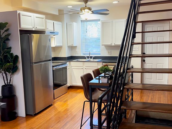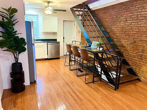 Experience the best of classic Baltimore charm and modern comfort in this beautifully updated brick-front rowhome. The main level welcomes you with gleaming hardwood floors, a cozy fireplace, and a stunning exposed brick wall that adds warmth and character. The open-concept kitchen features stone countertops, stainless steel appliances, and generous cabinet space ideal for everyday living or entertaining guests.