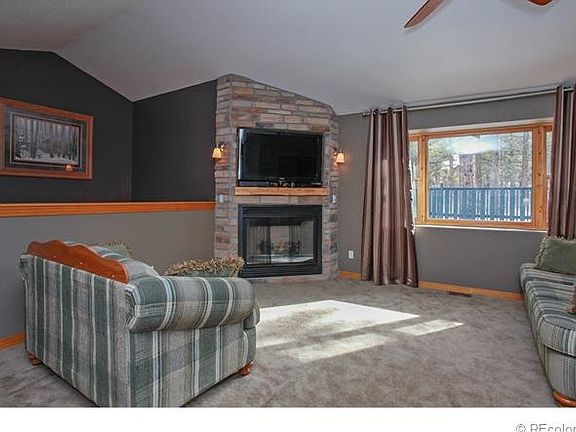 Beautiful Ranch style floor plan on 1 wooded acre with finished walkout 1 mile from Bear Dance golf course. Great Location on a quiet street with Easy access to I 25, DTC and/or Co Springs. Home features a Main floor master suite + 6 other bedrooms, 4 bedrooms on the main level. Kitchen features updated appliances, stained concrete counters, penensula island and eating space. Cozy family room with rock gas fireplace open to the kitchen. Large oversized 4 car garage and multi level decks in front and back of home. Home also has Central Vac, A/C with humidifier, and new carpet throughout!