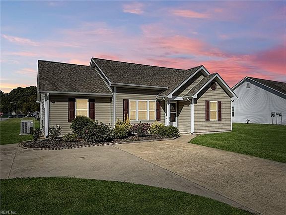 Freshly painted, move-in-ready ranch-style home that blends charm, function, and convenience. This single-story gem offers low-maintenance LVP, wood and ceramic flooring throughout, an ample spaced kitchen featuring stainless steel appliances, and a cozy gas-burning fireplace that anchors the oversized living room—perfect for relaxing or entertaining. The formal dining room provides an ideal space for gatherings and swoon-worthy front porch add everyday ease and Southern curb appeal. Step outside to enjoy a generous, backyard with tons of room. Whether you're hosting a cookout or enjoying a quiet evening under the Carolina sky, this yard delivers. The front half circle driveway will tickle the most persnickety parkers! Located just minutes from the state-of-the-art Sentara Albemarle Medical Center, this home is perfectly positioned near a growing hub of new development, dining, and shopping options—making daily errands and weekend outings a breeze. Call for your showing today!