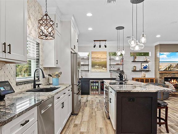 NEW ROOF COMING SOON + PRICE IMPROVEMENT - This stunning smart home combines modern elegance with cutting-edge technology, all while offering breathtaking views of Lake Gracie. From its stately front entrance to the circular drive at the rear, this home is designed for both beauty and convenience. The lower-level lakeside entrance welcomes you to a serene retreat, while the upper-level entrance, accessible via the circular drive, leads directly into the heart of the home. Every inch of this property has been meticulously transformed, leaving no detail overlooked. The home boasts newer windows, a state-of-the-art AC system, luxury wood-like vinyl flooring, crown molding, shiplap accents, and a beautifully updated banister. The kitchen is a chef’s dream, featuring stainless-steel appliances, granite countertops, and a cooking island with a breakfast bar. The enclosed veranda and expansive family room are perfect for soaking in the lake views, while the gas fireplace adds a touch of romance to the open, light-filled living spaces. The upper level is thoughtfully designed for modern living, with two spacious bedrooms, a stylish bathroom with a tub and shower, and an open-concept layout that maximizes the stunning water views. Downstairs, the ground level is home to the luxurious primary suite, complete with a spa-like ensuite bathroom featuring a large walk-in shower, double granite sinks, and high-end finishes. This level also includes a laundry room, a workshop, a screened front porch, and an oversized garage with EV-ready capabilities, a remote-access opener, and a pull-down workbench. As a fully equipped smart home, this property offers smart light switches in every room, a comprehensive security system with cameras and motion sensors, programmable window treatments, automatic entry lights, and a remote-access audio system. Additional features include a Murphy bed in the spare bedroom and new garage flooring.Move-in ready and truly one of a kind, this home is a perfect blend of style, functionality, and innovation, all set against the picturesque backdrop of Lake Gracie.