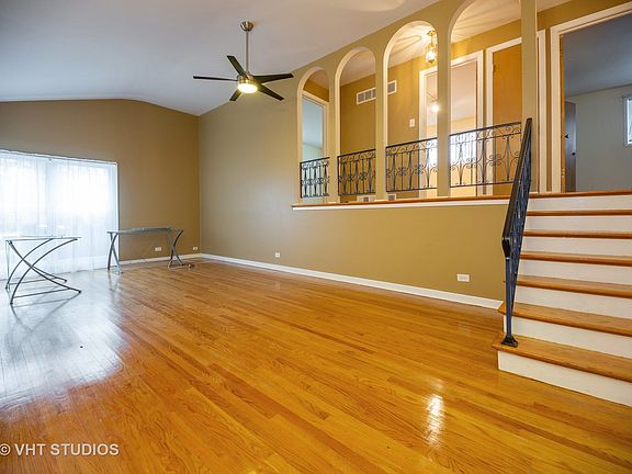 School District 28! Split-ranch home in quiet, cul-de-sac community. Master bedroom with vaulted ceilings and full bath on main level. 3 additional bedrooms up (split level) with full bath. Vaulted living room with separate dining area. Eat-in kitchen leads out to large back deck and enclosed yard. Freshly painted and newly refinished, hardwood floors. Finished basement with additional half bath. Laundry room includes additional storage. Covered car port. Quick access to I94 and minutes to Metra. Near Forest Preserve / bike path. Excellent school district.