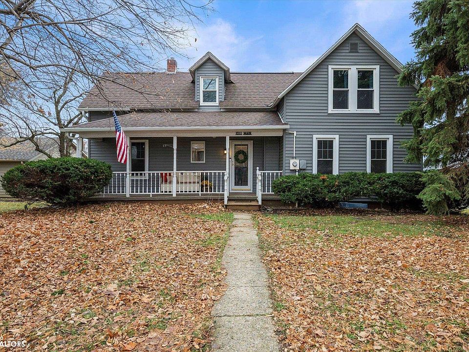 Welcome home! This beautifully maintained 1.5 story house offers 4 bedrooms and 2 bathrooms, perfect for comfortable family living. Nestled in a quiet, peaceful neighborhood, this property provides both privacy and convenience. Enjoy relaxing mornings and evenings on the open front porch, ideal for outdoor seating or seasonal décor. Gather in the cozy, light and bright kitchen which features a gas cooktop. Relax while watching the kids and dogs play in the fenced in backyard with a covered patio to make a pleasant place for enjoying time with family and friends, as well as, enjoying a nice rain shower. Inside, the home features a warm and inviting layout with plenty of natural light. A standout feature of this property is the large 2 car 26x30 detached garage, offering ample storage, parking, or workshop potential. New siding and gutters were installed in the last year. Hey, did we mention there is an adorable coffee shop just a two minute walk away?! Whether you're a first time buyer or looking for more space, this home delivers charm, functionality, and value. Don’t miss your chance to make this lovely house your next home!