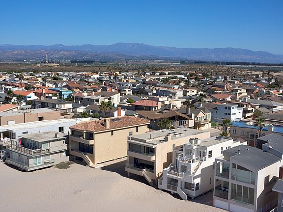 On The Sand! BeachFront house at Mandalay Beach. Bring your friends and family. There are 5 bedrooms and 4 1/2 bathrooms. Kitchen, living room, 3rd level den/tv room, master bedroom and bath all have ocean views. Lots of outside beachfront deck areas with access to the sand. Mandalay is a wide sandy beach. You can walk the seashore south 2 miles to Hollywood Beach and north 5 miles to Ventura. Panoramic ocean, island, whitewater, sunset, and coastal vistas out over the Santa Barbara channel to the Channel Islands.