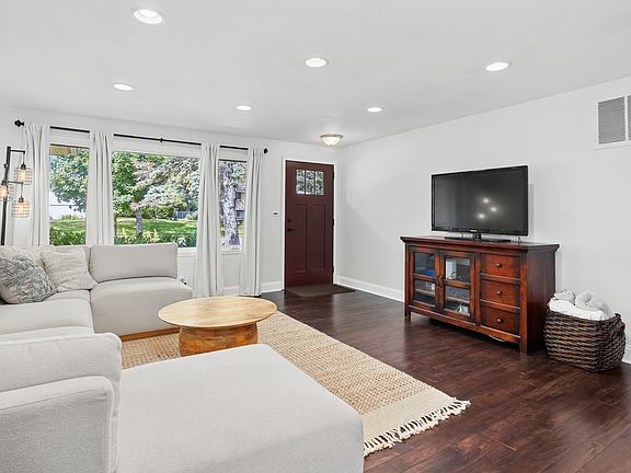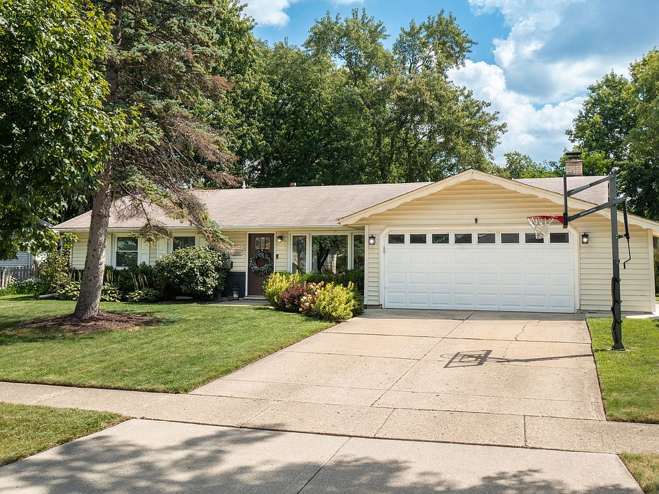 Welcome to this beautifully maintained and thoughtfully upgraded home, where comfort, style, and functionality come together seamlessly. Situated on a professionally landscaped lot, this property boasts fantastic curb appeal and an inviting outdoor space perfect for entertaining and relaxation. Step inside to discover a freshly painted main living area enhanced with recessed lighting throughout, creating a warm and modern ambiance. The updated kitchen (2016) is a chef's delight, featuring stainless steel appliances, a convenient coffee/drink bar, and plenty of counter space for meal prep and gathering. Enjoy cozy evenings by the wood-burning fireplace or unwind in the updated full bathroom (2021) and half bath (2019), complete with a custom-built vanity. All bedroom and bathroom doors have been upgraded to solid core 3-panel doors, adding a touch of sophistication and privacy. Enjoy doing laundry with the open floating shelves. Outdoors, the expansive California-style concrete patio wraps around to the front driveway, offering plenty of space for outdoor dining, lounging, and recreation. A dedicated brick paver pad is perfect for grilling and storage, while the mounted outdoor TV and surround sound speakers elevate your entertainment experience. A built-in basketball hoop adds fun and fitness right at home. Additional highlights include: Windows replaced in 2013, front entry and interior garage door (2014), HVAC and 200-amp electrical panel (2014), Concrete patio (2019). This move-in-ready home combines modern upgrades with timeless features - a true gem waiting for its next owners!