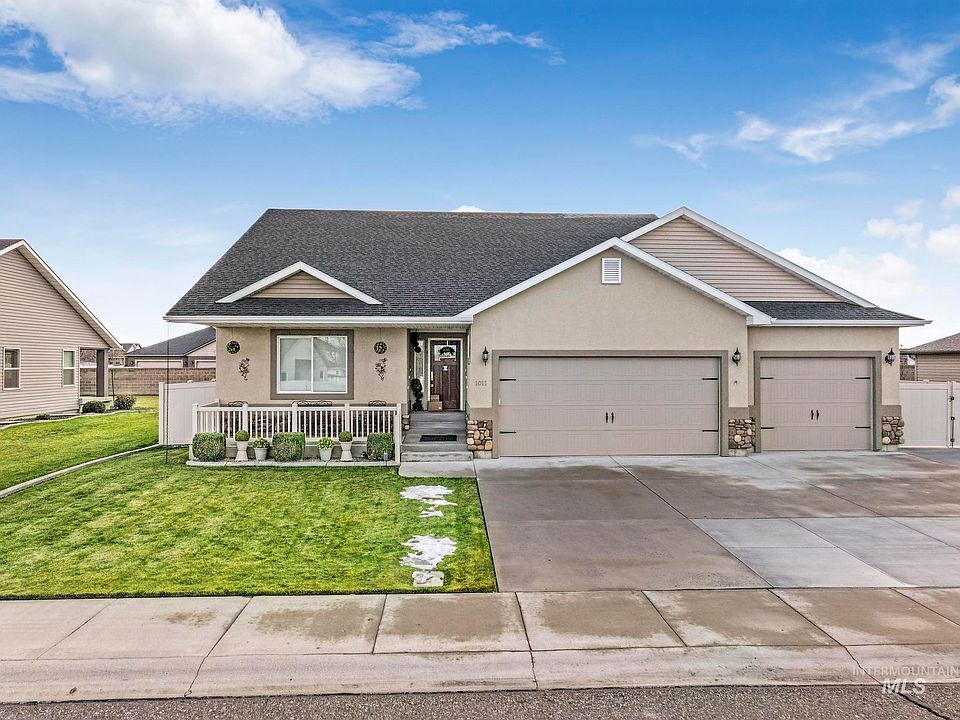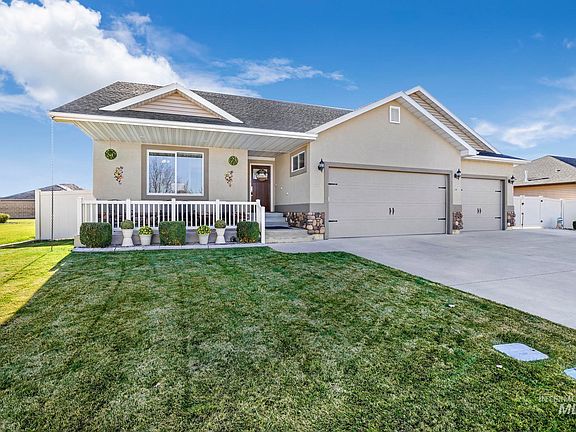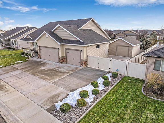 Welcome to your dream home! This stunning 5-bedroom, 3-bath residence, nestled on a quiet cul-de-sac, offers the perfect blend of elegance and comfort. Boasting an open floorplan with beautiful custom features, this home is an entertainer's delight with its seamless flow from room to room. The split bedroom floorplan provides two large living spaces. Imagine unwinding in the spacious master suite, complete with a large walk-in closet and a luxurious ensuite bathroom. The gourmet kitchen, equipped with modern appliances, ample counter space, and a convenient breakfast bar/island, accented by natural light pouring in through large windows. Step outside to your own private oasis with a large covered back deck, perfect for enjoying morning coffee or evening sunsets. The three-car garage ensures plenty of space for your vehicles and the property also features RV parking and a detached 4th-car garage for you to bring all your toys. Close to all what Twin Falls has to offer this beautiful home truly has it all!