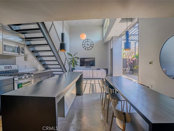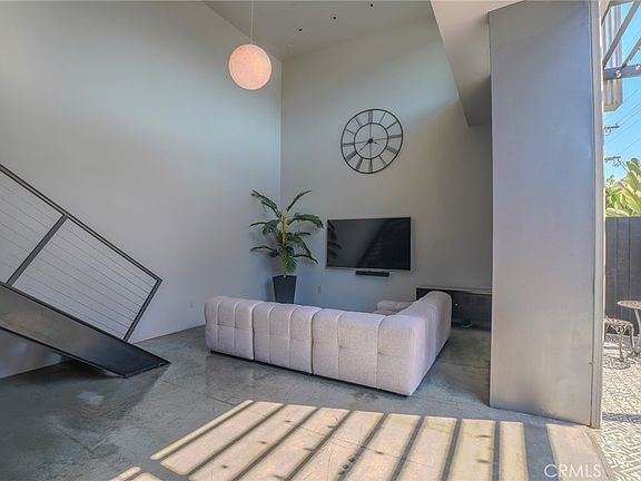 West Hollywood living at its finest! Located in a highly sought after AIA Award-Winning Building, designed by prolific Architects Pugh-Scarpa! This modern architectural gem has been intricately designed to captivate the senses of any contemporary design enthusiast. Soaring 17-foot ceilings create an expansive, light-filled living space with effortless indoor-outdoor flow. The living space has polished concrete floors, large pocket windows, and a sliding metal-and-glass wall which opens to an oversized patio complete with planter boxes, pergola, and high privacy fencing that is a perfect place for entertaining and relaxing. On the second level is a mezzanine-style office/flex space overlooks the living room, offering a dynamic and inspiring workspace. The top-floor primary suite features floor-to-ceiling windows with sweeping views of the Hollywood Hills. A flexible second room at the top level could potentially be used as a guest room, den, or studio. The spa-like primary bathroom includes a glass-tiled walk-in shower and tranquil ambiance. Other great features of the home include a Sub-Zero refrigerator, Dual Zone AC, and Ample storage throughout. Also includes gated subterranean parking and an HOA common area animal space/run at the back of the lot. All just moments from iconic Hollywood and L.A. landmarks perfect for urban dwellers and design lovers alike.