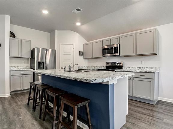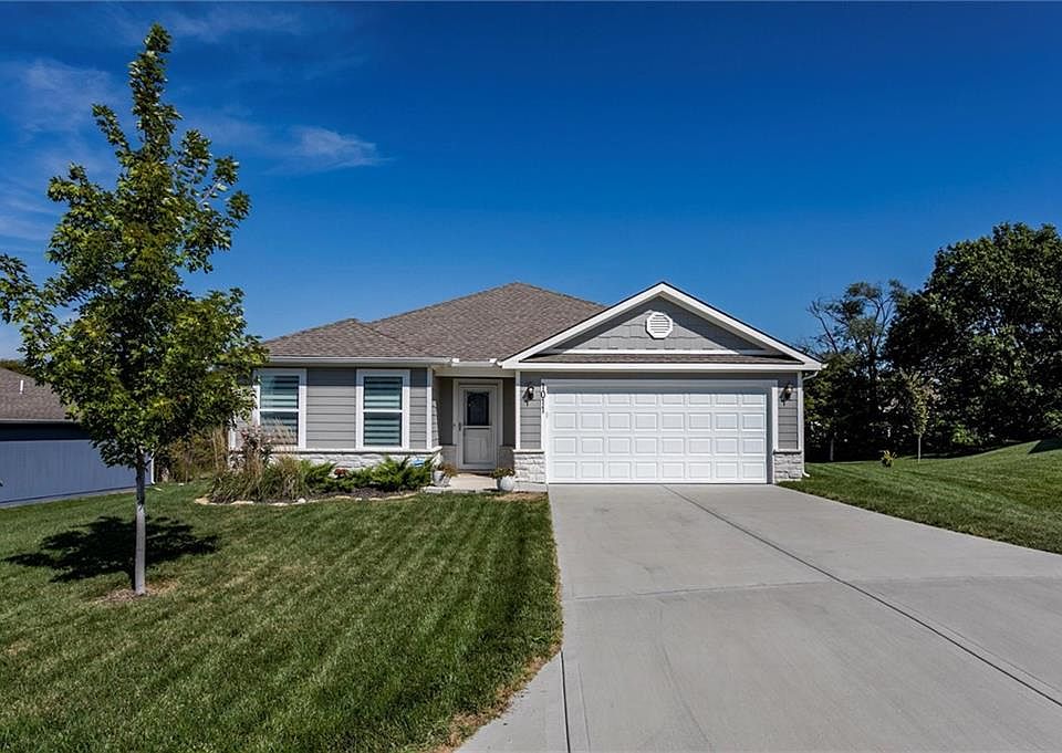 Enjoy easy one-level living in this spacious 3-bedroom, 2-bath ranch in a prime Paola location, just minutes from downtown, schools, and shopping. This nearly new, two-year-old home offers an open floor plan filled with natural light. The kitchen boasts a large island, abundant counter space, and a walk-in pantry—perfect for everyday living and entertaining. Retreat to the generous owner’s suite featuring a large walk-in closet and a bathroom with space for a future vanity or tub. Relax outdoors on the covered back porch and expanded patio while taking in peaceful views of the green space alive with wildlife.