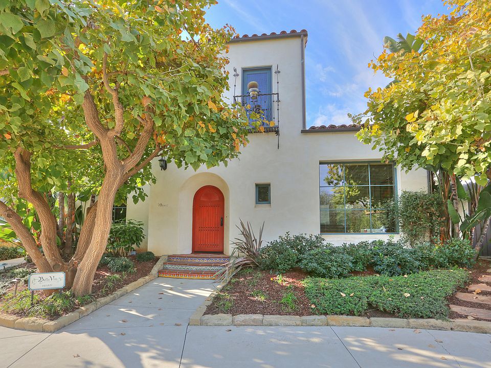 Beautiful Mediterranean Villa, 3 bedrooms and 2.5 baths, 5 easy blocks to downtown Santa Barbara. Architecturally stunning '' Bella Vita '' is a hidden enclave of 8 unique homes featuring red tiled roofs, whimsical wrought iron chimney caps and Juliet balconies overlooking a spectacular fountain courtyard. Casa Allegria boasts a ground floor spacious living room, dining and family room/kitchen that flows to a private landscaped patio/garden perfect for entertaining. A light & bright airy interior showcases many custom details, raised ceilings, a hand painted beam, a stone fireplace, decorative tile, reclaimed antique pine flooring, custom wrought iron light fixtures, hand rails, arched doorways & a private, spacious oversized 2 car attached garage plus storage completes this downtown gem