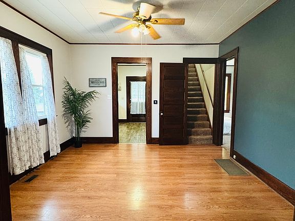 Welcome to your own private haven at 1011 S. Bringhurst Road! This charming home sits on a peaceful 1-acre lot and blends timeless character with thoughtful updates. Inside, you'll be greeted by original woodwork, glass knob door handles, a pocket door, and glass French doors that separate the living room from the cozy den. High ceilings add to the open, airy feel, while the kitchen brings modern convenience with vintage flair. Upstairs, a spacious bonus room is perfect for crafting, a playroom, or a man cave. A hallway lined with storage closets leads into a private bedroom. The unfinished basement offers even more usable space, complete with a laundry area, room for a freezer, and plenty of built-in shelving. Step outside and enjoy a fully fenced backyard with fruit-bearing apple and pear trees, blackberry vines, strawberries, asparagus, a grape arbor, and a designated garden plot. Perennial flowers add color and charm throughout the growing seasons. Three outbuildings-including a chicken coop/tool shed, corral area, and storage barn/garage-offer endless flexibility for hobbies, animals, or storage. An extra-wide driveway provides ample parking, and the west-facing front porch is the perfect spot for a swing and sunset views. Whether you're dreaming of peaceful country living, space to grow and garden, or simply a home full of character, 1011 S. Bringhurst Road is ready to welcome you. Schedule your tour today and come see all it has to offer!