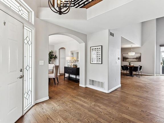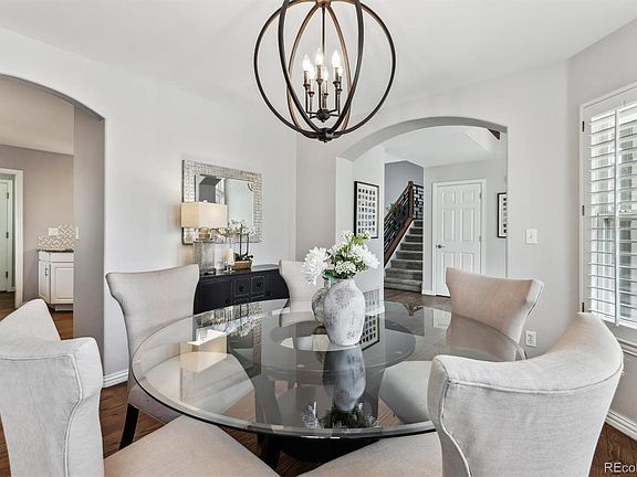 Don't miss this beautifully remodeled home in the highly sought-after Lighthouse community! Every detail has been thoughtfully upgraded, including newer hardwood flooring throughout the main level and a striking steel powder-coated custom stair railing. The bright and inviting living space features large windows, high ceilings, a newer gas fireplace, plantation shutters, and a recently updated kitchen that seamlessly flows into the spacious great room. The kitchen features a casual eating area, a large island, a spacious pantry, a gas range, ample cabinet storage, and two beverage refrigerators - entertaining flows so well in this space! This home offers both style and function, with a main-floor bedroom or study and a convenient ¾ bath. Upstairs, the luxurious primary suite is a true retreat, complete with a spa-like bathroom, a generous walk-in closet, and a private sitting area or study. The fully finished basement expands your living space with a large family room, two additional bedrooms, and a full bath. Step outside to enjoy professional landscaping, a beautiful oversized patio with garden and yard areas, and a private lot that provides a serene escape just moments from the High Line Canal. Additional upgrades include a newer roof, AC, and an epoxy-coated garage floor. This move-in-ready home perfectly blends elegance, comfort, and modern low-maintenance living!