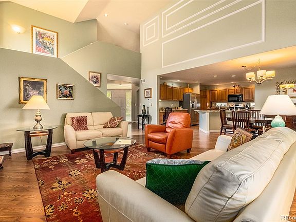 It's the extras that count! Soaring vaulted ceilings and large windows flood an abundance of natural light into this well cared for home! The floor plan is open, bright and airy and features a main floor bedroom/study and a 3/4 bath. Beautiful hardwood floors throughout the main level, dining room is located in the unique turret just steps away from the spacious and upgraded kitchen. Stainless steel appliances, handsome granite counter tops with a built in desk, gas stove with self cleaning oven. Upstairs master suite with vaulted ceilings, features a separate air conditioner with a remote control which cools the room within minutes. In addition to the dual vanities you will find a large walk-in closet where you will find with a fireproof floor safe and an efficient attic fan. The bonus loft space adjacent to the master suite gives you a home office which means you will never be late to work! The finished basement boasts deep egress windows, a large family room complete with wet bar and a small refrigerator, 2 additional bedrooms and a full bath. Buyers have the choice of a main floor laundry or downstairs where you will find a large functional laundry/utility room with a wall of built-in shelving (otherwise know as the COSTCO room) and mud sink. The backyard features a retractable awning, outdoor gas line with gas grill, professionally landscaped yard with sprinkler and drip system. The two car attached garage floor has an epoxy coating, access to the backyard and a generous amount of custom enclosed shelving for hidden storage. In addition to custom window treatments and the storm door, the furnace and central air conditioner were replaced just a few years ago, along with all of the toilets. Do not miss the opportunity to own this meticulously maintained home!