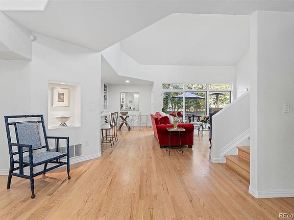 Remodeled Denver home with designer details and custom appointments in wonderful Lighthouse gated community. Rare find in Denver for a spacious single family home under $800,000 with attached 2-car garage, professionally landscaped backyard and patio and amenities galore. Special features: vaulted ceilings, open floor plan, lots of natural light, new carpet, new hardwood floors, new furnace, large kitchen with stainless appliances, quartz countertops, dining room, large great room with fireplace and doors to the a lovely garden, plus a main floor bedroom/study, laundry room and bathroom with shower. An upstairs loft is perfect for working at home. The primary suite adjoins a luxurious 5-piece bath leading to an expansive walk- in closet. The 2nd upstairs bedroom has a full bath with great tile work. Close to Lowry and Cherry Creek, this private gated enclave has a pool and inviting clubhouse. The nearby Highline canal offers bike trails and walking paths. Low maintenance living in the heart of Denver.