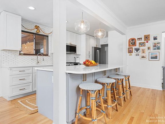 Don't miss out on this mid-century modern home that has been COMPLETELY updated within walking distance to the Big House! All brick ranch home showcasing 2516 sq ft (1566 sq ft above grade + 950 sq ft in the finished LL) is located in the desirable Eberwhite neighborhood. Brand new kitchen with spectacular island & an open floor plan to the large living rm with gas FP & eat in area, 4 nice sized bedrooms & updated bathroom. Gorgeous hardwood flooring throughout the 1st floor. The lower level provides a large family rm, office, full bathroom, laundry & storage. Outside is an oasis with generous fenced backyard, brick paver patio & 2 car detached garage. Updates/Amenities; Kitchen totally updated, interior freshly painted, light fixtures, window treatments, plumbing hardware, Central AC/Mini AC/Mini-split, lower level painted & new carpet, office build out with recessed lighting, new electrical panel, updated boiler, radon remediation installed, updated landscaping including privacy trees in the rear of the fenced in backyard 2020; 3 dimensional architectural roof 2018; Class 2 electric car charger, easy commute to 94, on the bus line, walk to Downtown AA, close to shopping & community parks., Rec Room: Finished