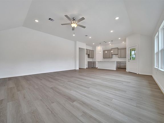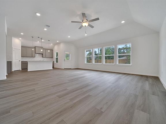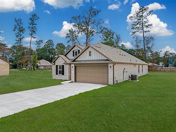 WELCOME HOME to Roman Forest!! Located on just over 1/2 ACRE lot in a peaceful country setting but yet just minutes from many local attractions. BIG RIVERS WATERPARK, Ipes Sports Park, Sam Houston Natural Forest, Lake Houston, and VALLEY RANCH TOWN CENTER! This NEW HOME OPPRTUNITY on PRIVATE CUL-DE-SAC lot features 3 beds, 2.5 baths & is loaded w/ stunning features -- GRANITE ISLAND kitchen w/ 42" wood cabinetry, walk-in pantry, and open to family room. Vinyl plank wood flooring in main living, high ceilings, ceramic tile in all wet areas and entry, & 10x6 pocket office or storage. Private primary retreat w/ split vanities, oversized shower w/ tile surround, chrome fixtures, 42" mirrors, and walk-in closet. Added energy features -- LED lighting, Low-E windows, 15 SEER HVAC, water conserving toilets, and so much more. Covered back patio and plenty of space for activities or a future pool in this backyard. NO HOA!!!