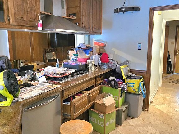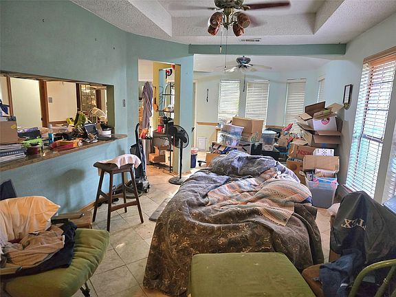 Ignore the boxes. Look at the walls and features!! This Semi Custom home has enjoyed a GREAT life! Lots of fun with the completely private backyard pool and two covered entertaining areas. Board on Board Cedar Fence and walk out back to the neighborhood playground! Inside you'll find Slate and Travertine floors with inlaid designs. Large Living Room with Vaulted ceiling and beautiful paneling which will look great either stained or painted. A HUGE fireplace, even some stained glass in the windows. This home is so unique as the homeowners enjoyed being creative. Split Bedrooms for privacy! Gas range, Double Ovens. CIRCLE Drive is another CUSTOM feature. And an additional rear parking pad for RV's etc. They moved the laundry from the kitchen to the garage to create additional pantry. The plumbing is still there if you want to bring the laundry back inside. Both bathrooms need a remodel, the bedrooms need flooring and the entire home needs interior and exterior painting. And I have a guy to do all of that for a GREAT price!! You'll have to put some of your own cash into this home and it is PERFECT for a new owner to enjoy. The home is dry, from what I can tell there are no leaks. The AC works great, good roof. Come see it at our Open House this week and let's see if this will work for you. The owner is moving more things out so it should be easy to see. GREAT Flower Mound Schools!!! No Survey