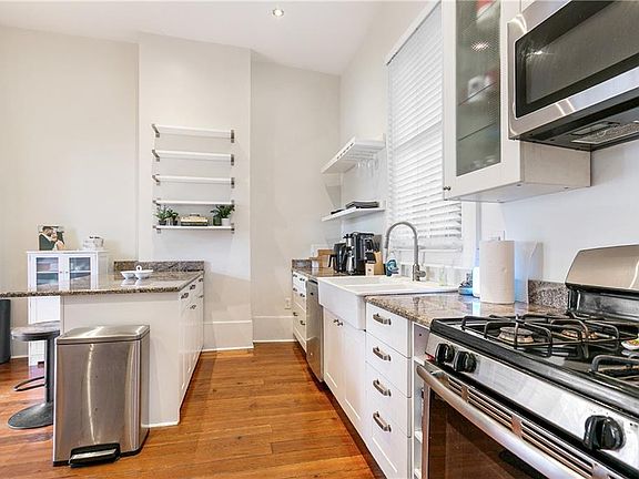 Incredible location right off of Magazine St! This 1 bedroom with an en-suite bathroom features hardwood floors, SS appliances, washer & dryer, central heat/air and a private courtyard. It can come furnished with a couch, chairs, barstools, bed, & bedside tables or unfurnished. This is a great opportunity to live within walking distance to everything Magazine St. has to offer.