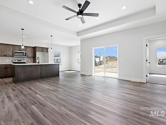 Home is on schedule to have front sod and sprinklers done. Come and take a look at this new home In Kimberly Idaho. Open floor plan with the master having a walk in closet and nice size bathroom. Custom soft close cabinets, Corian countertops, Tyvarian back splash and shower surrounds in the bathrooms. LVP and higher grade carpet throughout. Great views of open fields and nice sunsets. Enjoy the quick access that Kimberly has to offer and just a short drive to Twin Falls.