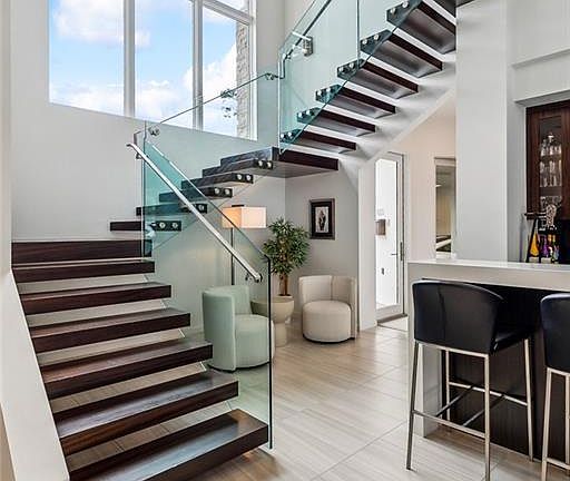 Welcome to 1011 W. Robert, a home where every detail has been meticulously crafted! Begin your tour in the utility room, featuring terrazzo floors, a full-size commercial ice maker with a remote condenser, and abundant storage for tools and outdoor kitchen supplies. The garage is designed with paver flooring, golf cart parking, and a full-length drain, making it ideal for washing cars, boats, and other toys. There is also a space for a home gym or workout area adjacent to the garage. Step inside to a breathtaking floating staircase, African mahogany woodwork, and a grand foyer that opens to the second floor. The wet bar is outfitted with an ice maker and custom cabinetry, while the kitchen impresses with Sub-Zero and Wolf appliances, custom-built Austrian laminate cabinets, filtered water for your morning coffee, a full-size wine cooler, and an additional ice maker.