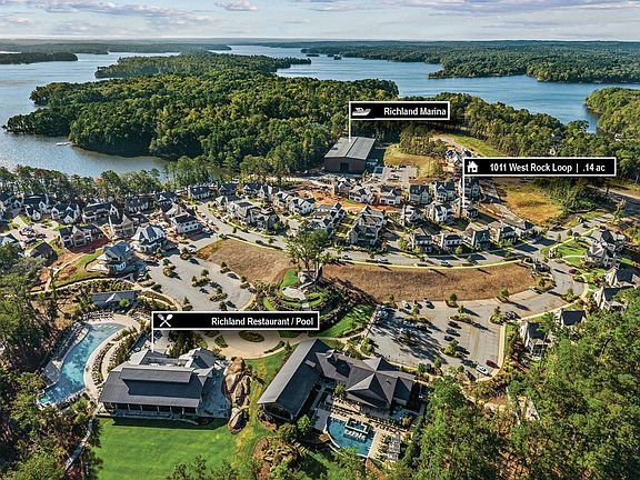 EXPERTLY CRAFTED WITH FLAWLESS ATTENTION TO DETAIL, THIS STRIKING BRAND NEW 4 BED, 4.5 BATH HOME IN RICHLAND VILLAGE OFFERS LUXURY LAKE LIVING JUST STEPS FROM THE POOL, RESTAURANT, GYM, AND MARINA. Set on a desirable corner lot with a large open common area side yard, this home immediately impresses with its stone and board and batten exterior, elevated front porch, and custom handcrafted wood front door. Step inside and you’re greeted by a functional drop zone that opens into a warm, inviting great room where wood beamed ceilings, a shiplap fireplace with a reclaimed 1800s mantel, and Visual Comfort lighting create an elegant yet comfortable feel. The chef’s kitchen blends beauty and function with SubZero, Wolf, and Cove appliances, floor to ceiling inset cabinetry, and a hidden scullery equipped with a beverage fridge. The open dining area flows seamlessly to the expansive front porch, ideal for morning coffee or evening gatherings. Off the great room, a second covered patio provides another outdoor living space perfect for entertaining or relaxing by the fire. The main floor primary suite features coffered ceilings with tongue and groove inset, a spa like bath with designer finishes, and a fully custom walk in closet complete with its own washer and dryer. A custom iron staircase railing leads upstairs to a spacious entertainment lounge with wet bar that opens to a large covered patio with a stone fireplace and mounted television, extending the living space outdoors. Upstairs also offers a flex room perfect for an office or gym, along with three additional bedrooms, each with ensuite baths and custom closets providing privacy and comfort. Every detail has been thoughtfully designed from the flagstone flooring and tongue and groove ceilings on all porches to the Juturna reverse osmosis system, tankless water heater, and three car parking pad with outdoor storage enclosure. This home perfectly combines craftsmanship, comfort, and convenience in one of Reynolds Lake Oconee’s most desirable communities. Membership available.