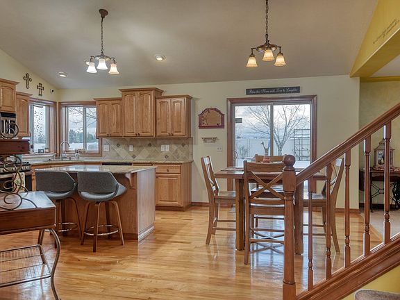 This home spans a generous 2688 sq. ft. featuring a bright and airy open-plan living area. Large windows bathe the space in natural light, enhancing the warm, welcoming atmosphere. It has a fully-equipped kitchen with newer stainless steel appliances, granite countertops, and ample cabinet space. The dining area is perfect for family meals or entertaining guests. There are five well-sized bedrooms and the primary suite includes a private bathroom with modern fixtures. Enjoy the beautifully landscaped backyard, complete with a patio area ideal for outdoor dining or relaxation. The fenced yard provides privacy and a safe play area for children or pets. There are many fruit trees, grape vines, blueberries and garden space. Additional amenities include: central heating and air, a dedicated laundry room, and a three-car garage all situated in a sought after area with top-rated Mead schools. You must tour to see the additional features! Don't miss the opportunity to make this home yours.