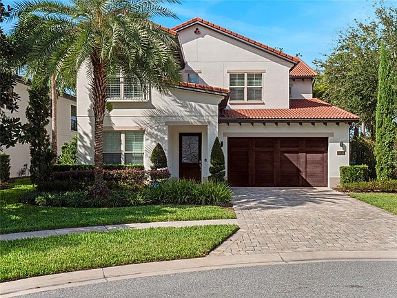This stunning lakefront residence offers an unparalleled waterfront living experience 5 minutes away from Golden Oak, Four Seasons Resort and the Disney Parks complex. Encompassing 6 bedrooms, 5 ½ baths, and 4,168 sq. ft. of designer-finished luxury living space, this home is nestled directly across from Disney's conservation property, providing a serene private oasis surrounded by nature's beauty. The open-concept main living areas provide breathtaking views of pristine South Lake. Complete with an outdoor kitchen, built-in gas fireplace, and a custom pool and spa featuring a waterfall wall. Dual Owner Suites, one on each floor, each offer luxurious private baths, separate soaking tubs, and glass-enclosed rain-head showers. The second-floor Owner’s Suite boasts a modern glass-railed balcony with 180-degree view of South Lake, a convenient morning kitchen, and a private laundry adjacent to two oversized walk-in closets. The spacious loft serves as an ideal space for relaxing and entertaining, featuring a wet bar with a wine cooler. The gourmet kitchen is a culinary dream, with upgraded cabinetry, Wolf & Miele appliances, Quartz countertops, and a large walk-in pantry. Outside, enjoy an expansive living area, including a rare two-level boat dock offering over 1,000 sq ft of outdoor living space over the water. The perfect place relax and watch the Disney fireworks each evening. Located in the exclusive, private, gated community of Royal Cypress Preserve, this home is one of only three luxury homes on the lake. The community offers resort-style amenities, including a clubhouse with a zero-entry pool, fitness center, lawn and landscape maintenance, and more. This stunning residence is just minutes from area attractions, world-class shopping, and fine dining. A Toll Brothers Signature Executive home, every detail of this home has been thoughtfully designed to create a peaceful, luxurious retreat, making this a rare opportunity to own a breathtaking lakefront property in one of Orlando’s most coveted locations.