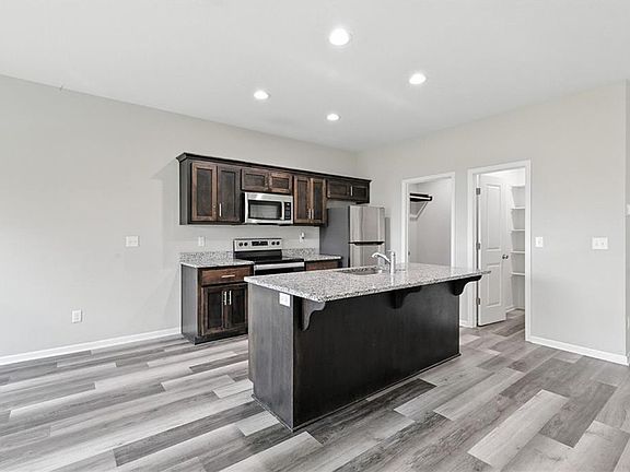 Beautiful one-story home with a finished basement featuring 4 bedrooms and 3 full bathrooms. This inviting residence offers an open floor plan with a stylish kitchen that includes an island, pantry, granite countertops, and stainless steel appliances. Enjoy outdoor living with a wood deck balcony and a covered porch underneath, plus a convenient exterior basement door leading to the backyard. Take in serene views of the pond and surrounding neighborhood. The primary suite boasts a double vanity and a spacious closet with built-in shelving. A dedicated laundry room with additional shelving and a 2-car garage complete this well-designed home. Schedule a showing today!