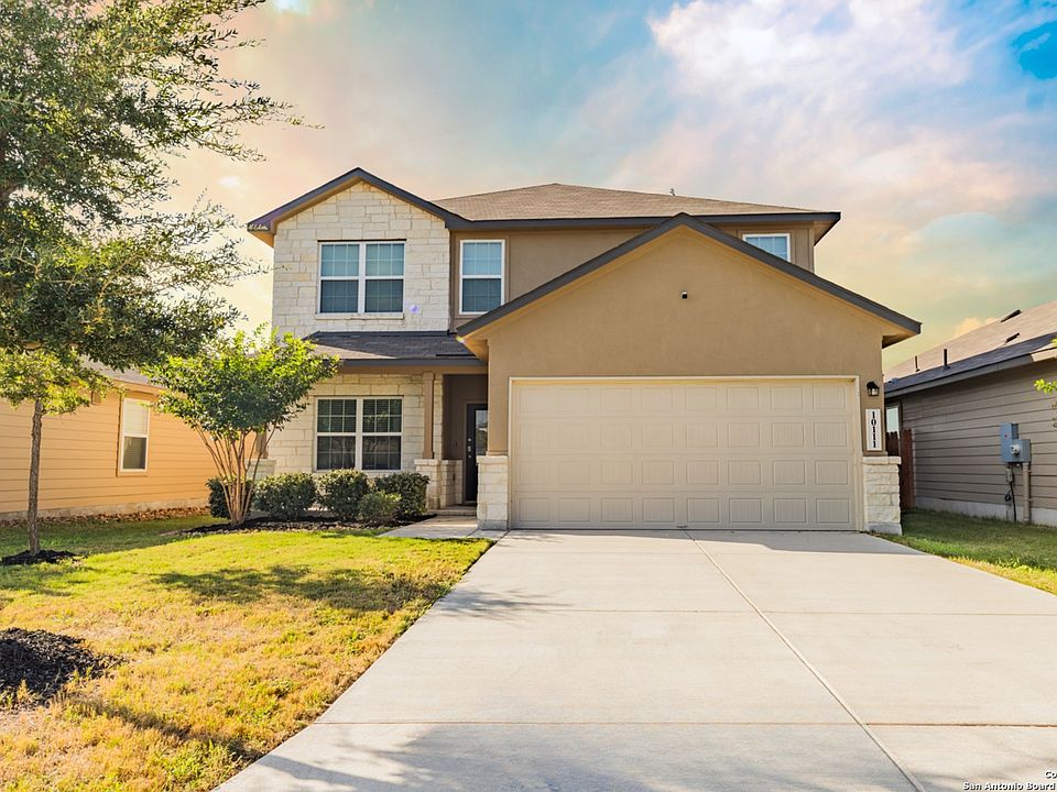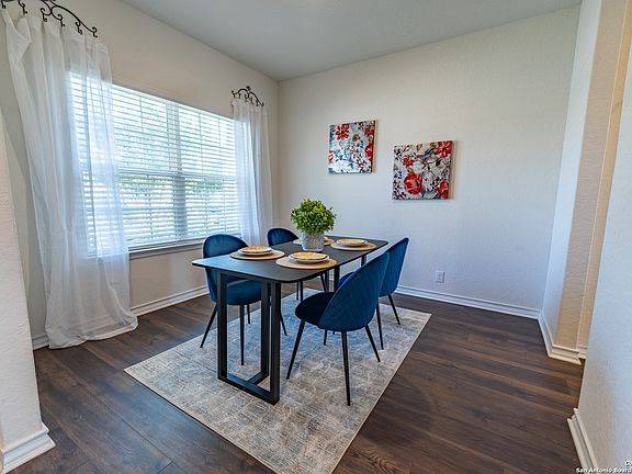 This spacious 5-bedroom Valley Ranch home combines modern finishes with resort-style community living. The open-concept floor plan features a gorgeous kitchen with granite countertops, stainless steel appliances, and an oversized island that flows seamlessly into the dining and living areas - perfect for entertaining. The luxurious primary suite includes dual vanities, a garden tub, walk-in shower, and generous closet space, while upstairs you'll find large secondary bedrooms and a versatile game room. Step outside to enjoy a covered patio and private backyard retreat with no direct backyard neighbors. The lifestyle Valley Ranch offers stand out - you'll have access to multiple pools with water slides, a splash pad, 24-hour fitness center, sports courts, playgrounds, and even a private fishing pier. Families love the top-rated Northside ISD schools (Kallison, Straus, Harlan), and the location puts shopping, dining, and Government Canyon State Natural Area at your fingertips - all with no city taxes. This home is ready for its new owner today-don't wait to experience the Valley Ranch lifestyle!