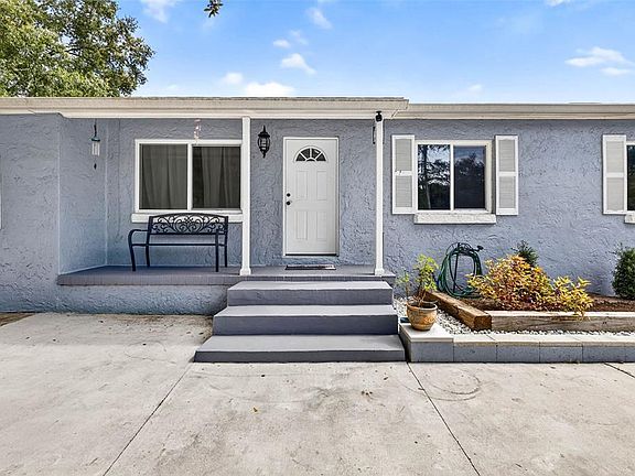 Welcome to this beautifully updated 4-bedroom, 3-bath home offering over 1,800 sq. ft. of living space on a spacious 0.28-acre corner lot. This property combines comfort, functionality, and modern upgrades, making it move-in ready. Enjoy peace of mind with new hurricane-rated windows, a new back entry door, and a new AC unit (2024). The interior features brand-new vinyl flooring and carpet, freshly painted walls, and updated baseboards throughout. The kitchen includes stainless steel appliances, granite countertops, garbage disposal, and over-cabinet lighting, with a cozy eat-in dining area nearby. The family room, with its vaulted ceiling, opens directly to the large backyard—perfect for entertaining or relaxing on the spacious deck. The primary suite features double closets and plenty of space for a lounge or home office setup. A detached garage with a half bath and a separate air-conditioned/heated laundry or bonus room provides extra versatility for storage, hobbies, or workspace. Outside, enjoy the fenced yard, new gazebo, and shed, creating a versatile outdoor area for gatherings, storage, or play.