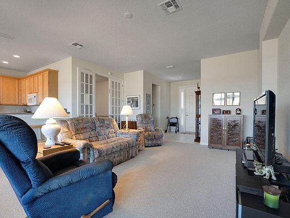 Stetson Model on the meadow with back facing north so no direct sunlight to limit your use of the glass enclosed sun room. This home is a 2+den/2/2 with a great layout and located in one of the great sections of Stone Creek. Mature landscaping, fenced rear yard for your 4 legged family member, fabulous meadow views, 36'' kitchen cabinets with corona countertops and white appliances. Large pantry and an oversized eating area. Large bedrooms, tall commodes in both baths as well as comfort height cabinets in both baths. This is a great home for the investment and it is ready for you to move right in and make it exactly what you want. The price is very aggressive for this location. Don't let this one slip away!