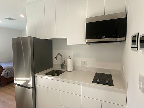 Studio over garage, fully furnished, perfect for one person. Utilities included. One set of stairs to access entry door. No pets and No smoking allowed. All new kitchenette, bathroom and wood flooring with large walk in closet. Private entry. Street parking. Quiet canyon location just ten minutes from Beverly Hills. Home owners on same property in main house. No Smoking. No pets allowed. 6-12 months Lease. Gas, Electricity, Water included.