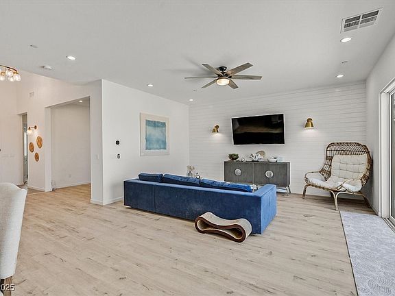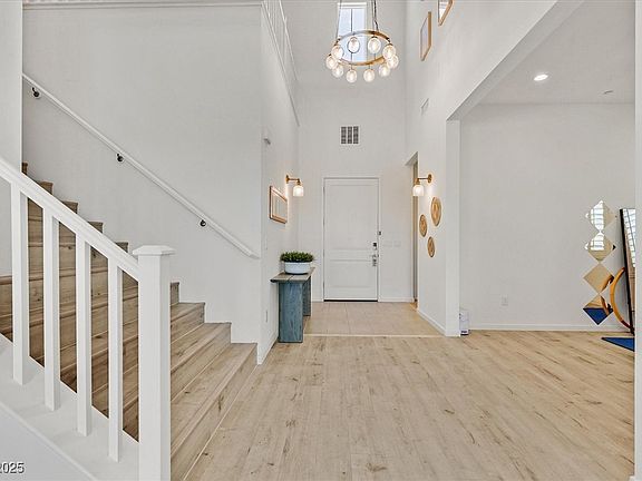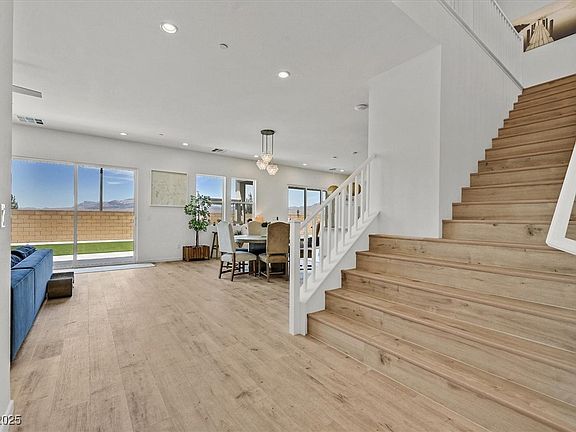 Walking into this incredible home you are greeted with soaring ceiling and generous open space unfolding into a bright and airy calm. This incredible home located in the highly desired community of Skye Canyon. Boasts 5 bedroom 4 ½ bath and 3 car garage with attention to high end fixtures and styled upgrades everywhere. The chef kitchen and modern upgraded cabinetry, quartz countertop and open kitchen space. Main floor guest bedroom has separate ensuite with seamless shower entrance! Upstairs loft continuous the open feel and seamless flooring....the master bedroom has custom shower and custom closet features. 3 more bedrooms upstairs complete this exquisite home…..all Situated on the LARGEST LOT in the community and located in a cul-de-sac. The backyard is finished and ready for your personal touch. Imagine adding a custom pool/spa, a basketball court, a bocce ball court, or a tranquil garden. Let your imagination run wild, as this home has the space to accommodate your dreams!