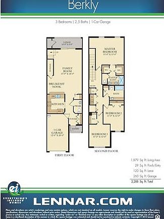 The Berkly floor plan features 1,879 square feet of living space ideally arranged in two stories. The upstairs is where the three bedrooms reside with a convenient split plan with master bath and guest bath. The downstairs features an expansive family room and dinette off of the kitchen for multitudes of relaxation options. A downstairs half bath keeps guests from having to go upstairs and is the perfect primping spot before heading out. A large lanai is ideal for spending a lazy day reading or kicking back with a nice cool drink after a long day. The one-car garage keeps your auto safe from the elements rain or shine. Community features security gate, community pool & spa, clubhouse with fitness center - men's & women's locker rooms with sauna, movie theater, pool table, WIFI, and card table with full kitchen for entertaining!