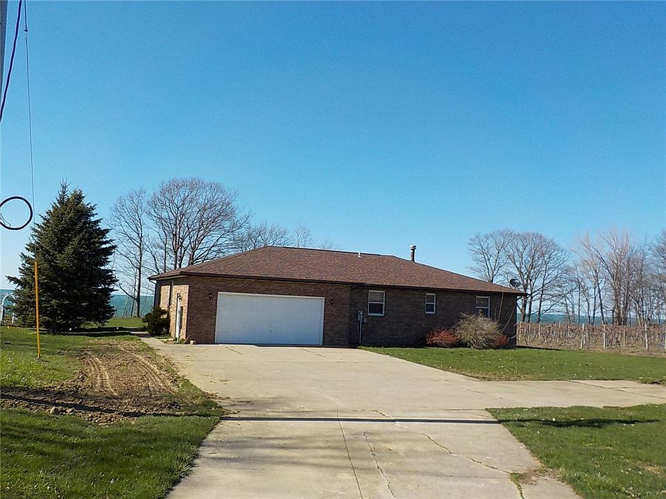 LAKE FRONT WITH STEPS TO ACCESS LAKE ERIE. CUSTOM BUILT BRICK RANCH WITH 2 MASTER BEDROOM SUITES AND A 3RD FULL BATH IN HALLWAY. KITCHEN, DINING, LIVING RM ARE OPEN FLOOR PLAN. HARDWOOD FLOORING. LAUNDRY OFF THE KITCHEN. FULL BASEMENT. ONE CAR ATTACHED GARAGE AND A DETACHED GARAGE AT ENTRY THAT WAS ORIGINALLY USED AS A CAR SALES BUILDING. ABOUT 3 ACRES CONCORD GRAPES THAT ARE LEASED OUT. RIPLEY SCHOOL DISTRICT. PARCEL NO 066200-223.15-1-37