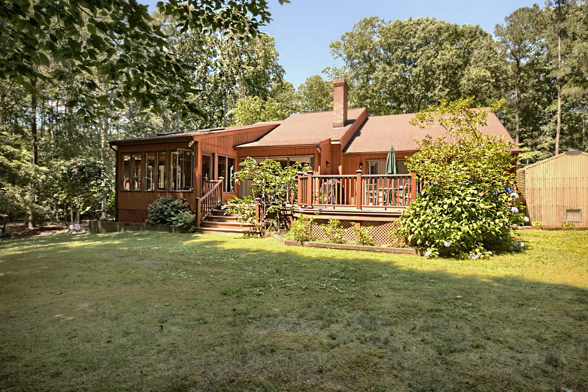 Serene wooded acresMature hardwoodsOpen lawnsVaulted great roomComposite deckAmple space for gardensSmall-scale farming
