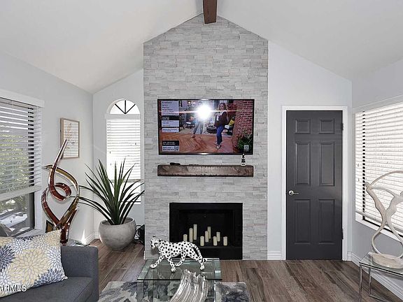 Resort Like Gated Community, Well Maintained. Beautiful Condo Has Been Completely Remodeled, Turn Key, High End Finishes, Plank Tile Flooring Throughout. Highly Upgraded Kitchen, Granite Counters, Breakfast Bar, Stainless Steel Appliances, Open To Great Room. Vaulted Ceilings, Lots Of Natural Light. Beautiful Stacked Stone Fireplace, Dramatic Wood Accent Beams Add Character & Charm. Primary Bedroom Enjoys Two Walk-In Closets With Custom Organizers., Dramatic Wood Beams. High End Stacked Washer/Dryer, Newer Water Heater With Handy Hose Bib For Cleaning Patio. One Car Garage, Peaceful Water Feature At Unit Entrance, Steps To Tropical Pool & Spa, BBQ Area, Workout Facility. Convenient To Grocery, Restaurants, Shopping, Hospital, Easy Freeway Access.