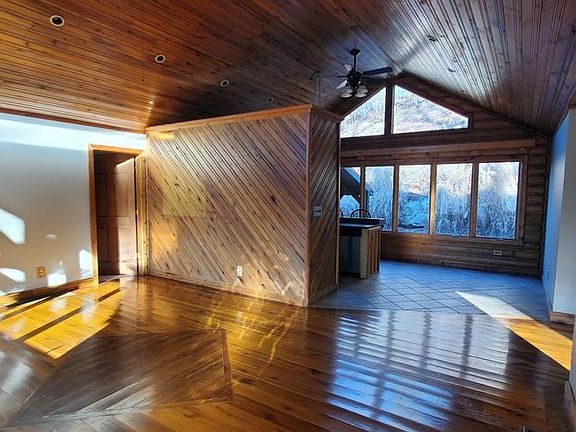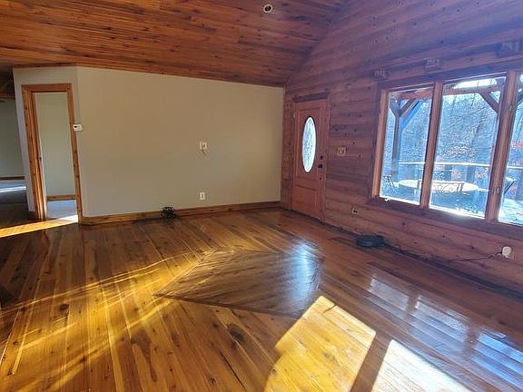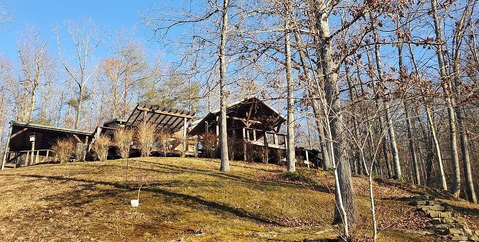 Seldom will this type property become available so don't delay your private viewing. Log sided stick built home on about 12.5 acres M/L of privacy surrounded by mature trees, winding paths, ponds, caves, a true nature lovers paradise. Stocked pond for fishing or floating, three bedroom home with beautiful vaulted wood ceiling, decking galore and hook ups for a hot tub that overlooks the cave entrance. There is workshop space in the 22.10x39 ft metal building that would house all the equipment you could need for a business, or as added income perhaps rent space for those who frequent Rush Off Road. This building also has a one car garage and lean to. A second three bay garage near the house would be great for more storage, toys, vehicles, boats, whatever, and also has a lean to. There is a carport at the house too. A very unique feature of the home is a heated.. yes HEATED deer blind behind the home. This one is situated behind a gated entry for added privacy and security and is a beautiful setting. Bell and post it's on and koi in pond do not convey with property.