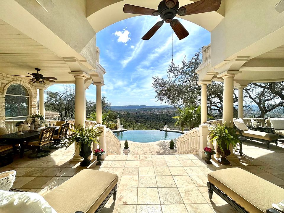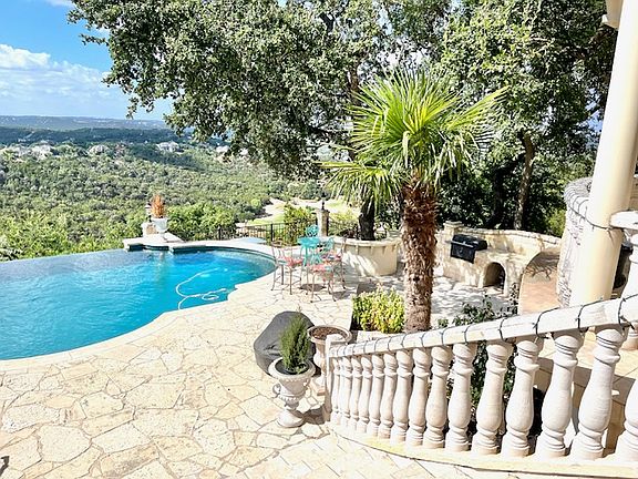 -Heated infinity pool overlooks golf course from above, treetops of the green belt and this beautiful hillside neighborhood