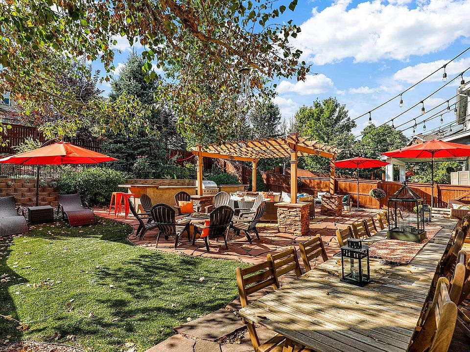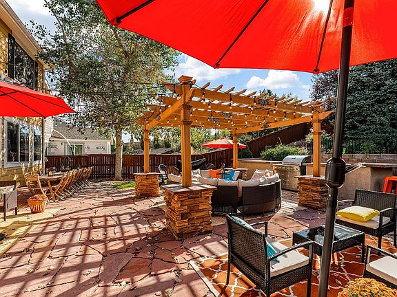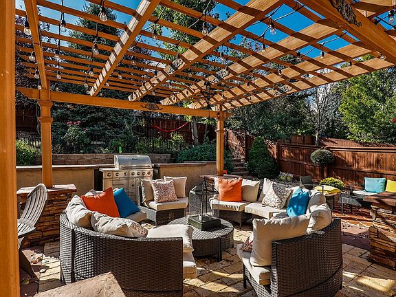 Welcome home to this stunning entertainer's & family dream in desirable Southridge. Soaring cathedral ceilings and tall windows with custom draperies greet you in the front room. The open floor plan flows into the great room with a gas fireplace and opens into the spacious kitchen. Beautifully updated kitchen with tile counters & 18 X 18 Tuscan tile, Brazilian cherry floors, SS appliances, dbl oven, and new gas range. Sunny breakfast nook complete with a kitchen desk in the corner. The private, lg, mature landscaped backyard is the perfect entertaining space with a fire pit, pergola, lg flagstone patio, and a new built-in kitchen with fridge, grill area & bar. Extra flex space upstairs can be a 4th br, teen hang-out, man cave. Designer paint and fixtures upgraded throughout including all lighting and bathrooms. Tankless water heater, 5 inch designer baseboards, new roof, new exterior paint, storage, and mud room. Walk to schools, open space, walking trails and close to the rec centers.