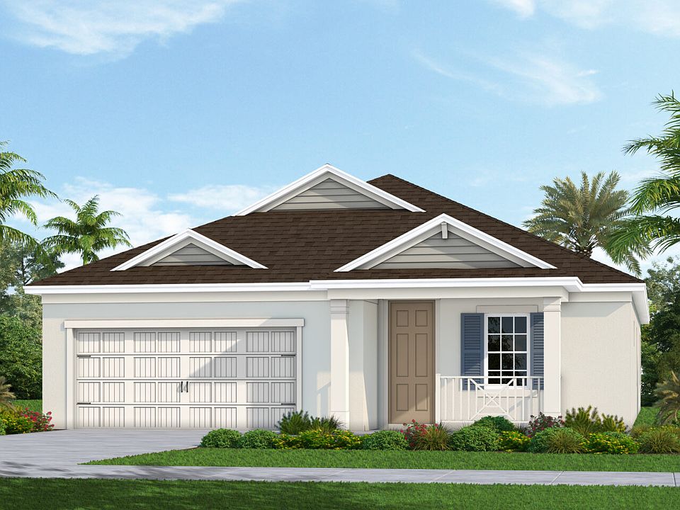 This charming home design by Neal Communities offers an elegant yet comfortable place to call home. The open main living area includes a great room, kitchen and dining room area. The kitchen features an island and walk-in pantry. Pocket sliding glass doors in the great room with coffered ceiling open to the covered lanai, where you can relax and enjoy the view. The luxurious master bedroom includes a sitting area and, for an additional touch of style, recessed ceiling. The master suite also holds two walk-in closets and a bathroom with walk-in shower, double sinks vanity, and private water closet. The additional bedrooms include one designed as a guest suite with private bath. The home also includes a leisure room.