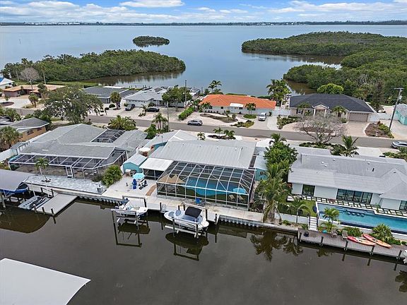 Live like you're on vacation in your very own slice of paradise! This wonderfully maintained waterfront home is located in the highly desirable Flamingo Cay community that is located just 3 miles from the stunning beaches of Anna Maria Island and is just a short drive the the world-renowned IMG Academy. The home offers canal front living with two remote boat lifts (up to 10,000 lbs and up to 7500 lbs) with direct access to Palma Sola Bay, the Gulf and is just a short boat ride to the scenic Robinson Preserve. This home did NOT flood and did not suffer any damage from the recent storms and is protected by a new vinyl seawall that is warranted for 60 years providing priceless peace of mind! This home has numerous upgrades and updates and as you walk in the front door you will enter in an amazing great room filled with abundant natural light that has direct views and access to your very own salt water pool and waterfront backyard. The great room which is the perfect place for entertaining is contains a spacious living room with an amazing kitchen that offers custom cabinetry, granite countertops, commercial grade appliances, ice maker, wet bar, an enormous center island and so much more. The primary suite offers a custom walk-in closet with custom closet system and a STUNNING spa-like owner's bathroom has a beautiful custom vanity, dual shower and gorgeous tile work. The second spacious bedroom has a built in king sized Murphy Bed and many custom features. Outside you will enter your very own private oasis with a sparkling salt water pool, incredible screened-in pool/patio area and water access that would fulfill every boat lovers dream with a large dock with water and electric. Outside also features a shed/workshop with electric and enough room to store and additional boat/vehicle in a private fenced side portion of the yard. The oversized garage is currently set up as an amazing man cave and has custom flooring, a split AC system and tons of room for all of your toys! HOA is optional. LOVE WHERE YOU LIVE!!