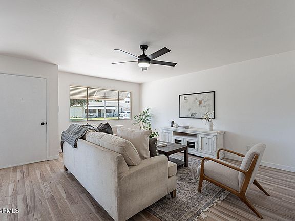Beautifully Updated 2-Bedroom Home in 55+ Sun Air Estates Community Welcome to this fully remodeled 2-bedroom, 1.5-bathroom home located in the desirable Sun Air Estates 55+ Community. With a long list of updates, this home is move-in ready and perfect for comfortable, low-maintenance living. Upgrades include: Fresh interior paint and new baseboards, Luxury vinyl plank flooring and new carpet in bedrooms, Stylish quartz countertops, new cabinets, and stainless steel appliances, Updated ceiling fans, hardware, faucets, and reglazed showers, Brand-new AC unit, New garage door and opener. This vibrant community offers fantastic amenities such as a recreation room and a community pool, all designed to support an active and social lifestyle. Ideally located just off the Loop 101, you'll enjoy quick access to shopping, dining, and several golf courses within five miles. Plus, downtown Phoenix is just a 25-minute drive away