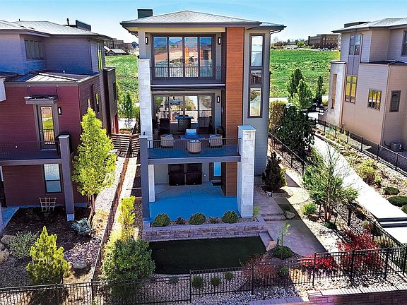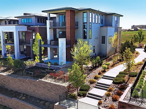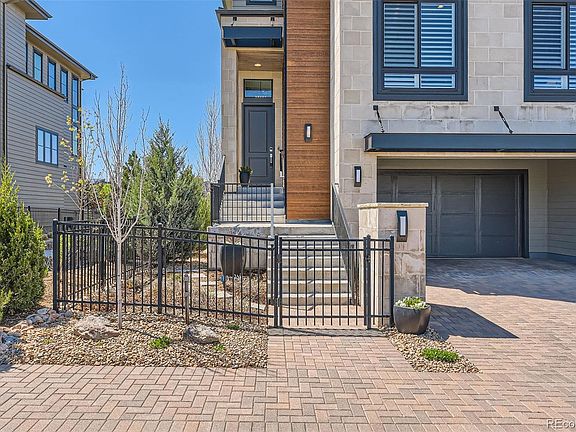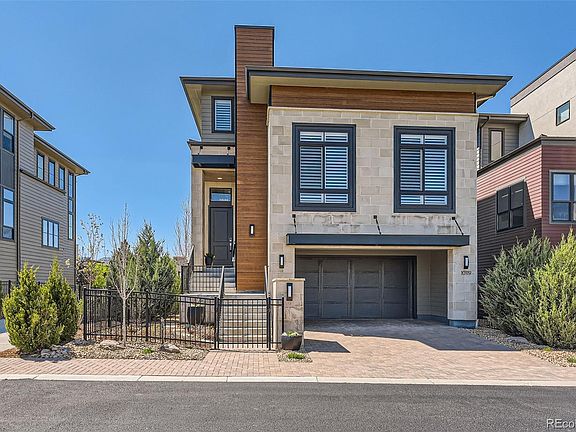 Stunning contemporary living in Lone Tree’s popular Ridgegate area. This sophisticated executive-style home offers a luxurious, low-maintenance lock-and-leave lifestyle. Enjoy luxury finishes with an open floor plan and 3 stunning levels with an ELEVATOR for your convenience. This home that backs to open space features spectacular mountain and city views in a remarkable walkable location near coffee shops, restaurants, Lone Tree theater, library, light rail, medical, parks/trails, recreation/community center and all the amenities Lone Tree offers. The Main level offers the ultimate living room with soaring windows capturing the Rocky Mountains, city views. Spacious and sleek kitchen opens to living and dining areas featuring top of the line Bosch stainless appliances. Under-cabinet lighting accent the smooth quartz counters, wood cabinets with pull-out shelving, pantry and a large center island. The family room off the kitchen can also flex as a giant office for 1-2 people working at home. Primary Suite has a five-piece bath with a soaking tub, large walk-in shower, large walk-in closet and laundry room. Second large bedroom upstairs also enjoys a full ensuite bath. On the lower level, you will find a third bedroom with an ensuite bath with access to the covered patio. Professionally landscaped backyard overlooks open space and has plenty of room for a fire pit and even a spa. Remote-controlled blinds and plantation shutters throughout the home. Remote-controlled electric retractable awning over main level balcony/patio, oversized storage closet in garage, 50 amp outlet for EV charging, tankless water heater, and dual-zone HVAC are just some of the included technology-driven features in this stunning home. Premium lot next to greenbelt with direct access to biking/hiking trails, playgrounds, and Lone Tree Athletic House with Pickle Ball Courts and SkyView Park with annual 4th of July activities. Enjoy luxury living in this impressive, automated contemporary home.