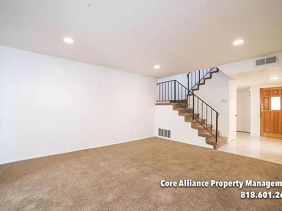 Must See!! Behind your personal entry gate, you will find an updated 3 bedroom 2 and a quarter bath, 2 story home. The open floor plan is inviting and the kitchen boasts granite counters, tile floors and custom cabinets. Downstairs you will also enjoy a large living room with a fireplace with a large bonus room. Brand new carpets and paint . Plenty of storage space with laundry hookup and machine on property. The beautiful Master suite adds to the great decor with its custom closet. The backyard with a patio is perfect for entertaining! Easy access to Freeways and close to Topanga Mall, The village. HOA fees is homeowner responsibility and is included in the rent.