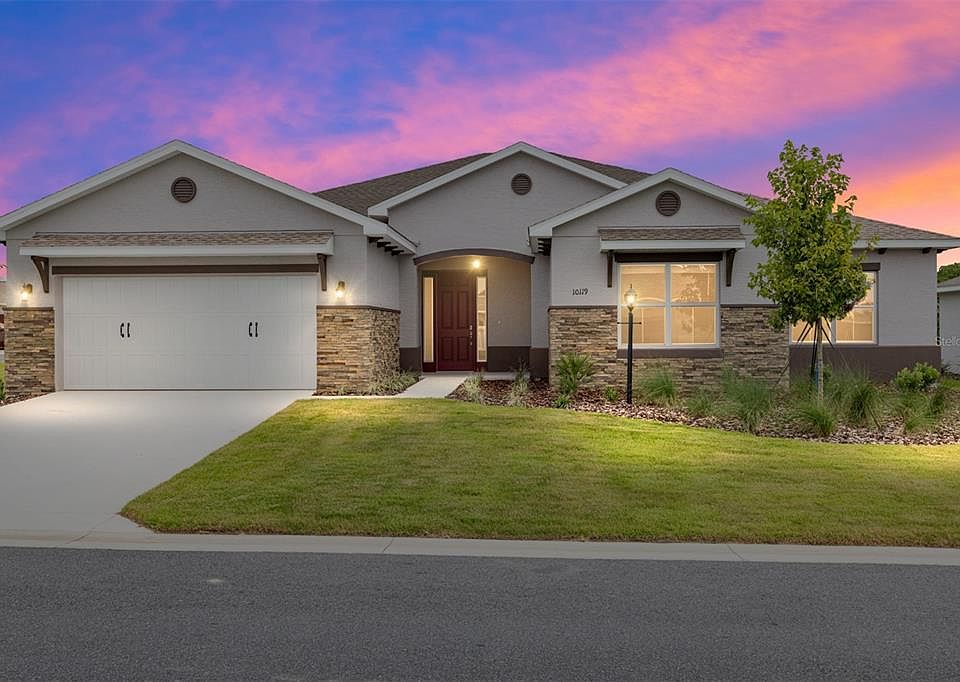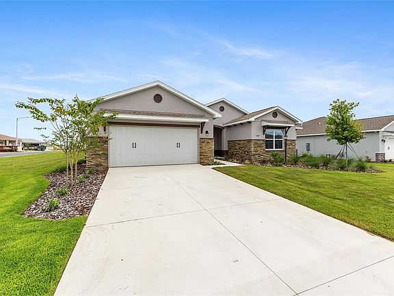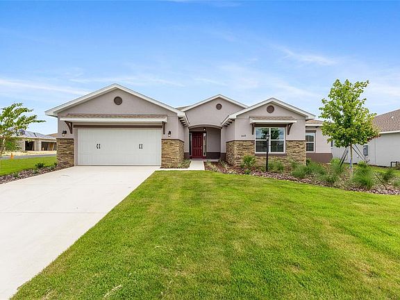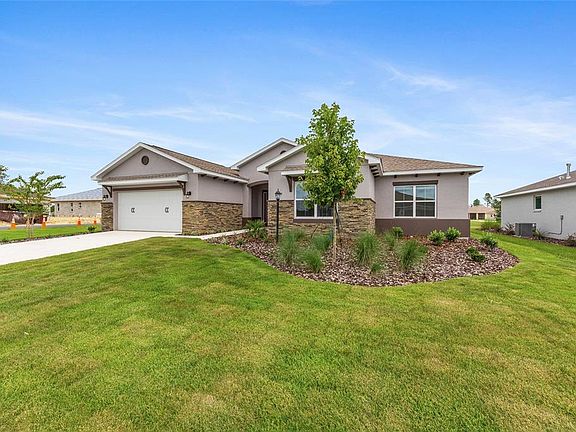 Welcome to the brand-new Willem model in LongLeaf Ridge at On Top of the World! Situated on a desirable corner lot, this 3-bedroom, 3-bath home also features a versatile den/flex room and an oversized 2-car garage.! Inside, you’ll find luxury vinyl flooring throughout and an open concept living area with a beautiful tray ceiling. The gourmet kitchen is a chef’s dream with an oversized quartz island, staggered cabinetry with crown molding, elegant tile backsplash, Whirlpool stainless steel appliances, under-cabinet lighting, and a spacious pantry. A separate dining area provides the perfect spot for gatherings and entertaining. Sliding glass doors open to a large screened-in lanai overlooking your backyard. This home offers two master suites, ideal for guest privacy or multi-generational living. The primary suite showcases a tray ceiling, a huge walk-in closet, and a spa-like en suite with dual quartz vanities, a zero-entry tiled shower with bench, and a linen closet. Located in Ocala’s premier 55+ gated community, residents enjoy world-class amenities, golf cart access to shopping, and an unmatched lifestyle. Don’t miss the chance to own this spacious and elegant Willem—schedule your tour today!
