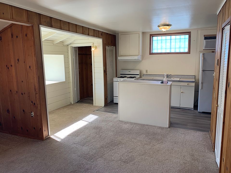 A clean and quiet one bedroom, one bathroom, upstairs unit. Wall AC and floor furnace keep the climate at comfortable tempatures year round. The kitchen offers an open floorplan to the living room, with a gas stove, full fridge and garbage disposal. While the knotted pine walls offer a cabin escae ambiance.