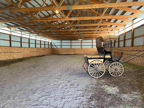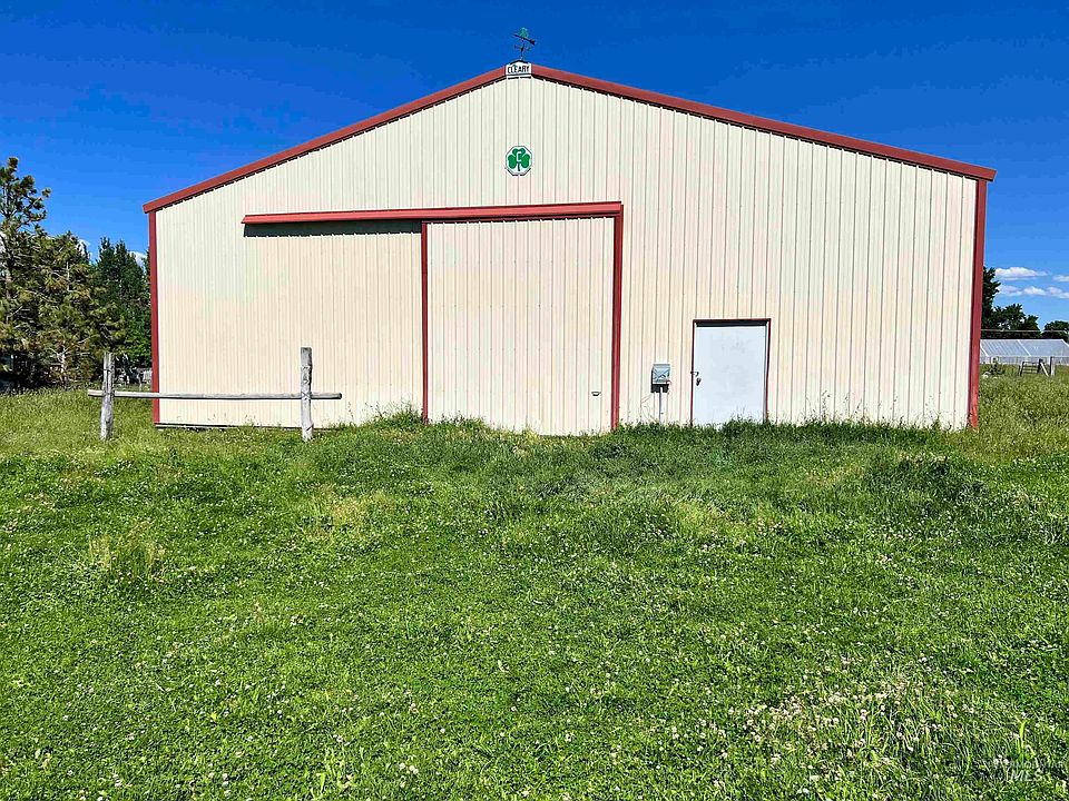 Awesome, hard to find building site close to town. Just outside city limits, no CCRs, no HOA. Has 100ft X 50ft Cleary building on it, been used as an indoor riding arena, has dirt floor in it, has power to building. Property is in irrigation Assc. that has time share usage. Pasture has K-line and pasture pods with pressurized pump system. 3shares of water with the 2.27 acres. LA will explain irrigation. Contact listing agent for showing, must be present because of animals on property. Stock panels and personal property in barn not included. Taxes include house and property before split.